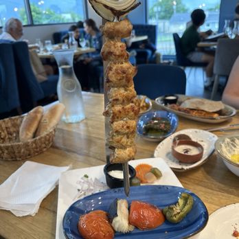 My main dish was a grilled chicken shawarma with roasted veggies on the side and rice laced with saffron. The chicken's flavor was enhanced by marinating it in a mixture of spices, such as paprika, coriander, and cumin. The roasted carrots, bell peppers, and zucchini gave a lovely compliment to the rice and shawarma.